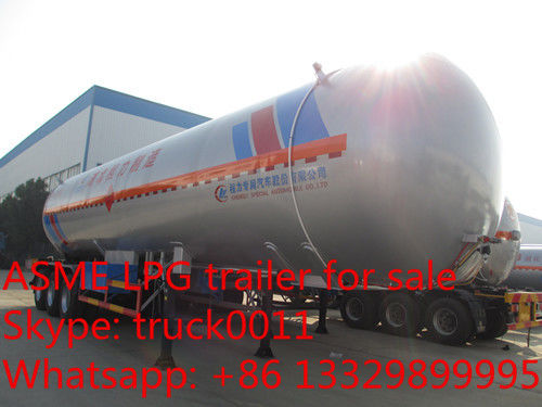64cbm LPG propane gas tank trailers adopts single outlet, double side loading and unloading, double valves boxes, double toolboxes, safety valve, temperature gauge, pressure gauge, cut off valves, 3 axles 13ton FUHUA bridge, 12 sets12.00 vacuum tyres and 1 set spare tyre, JOST outriggers, JOST traction pin, two extinguisher bottles, steel flippers, with ABS, etc.